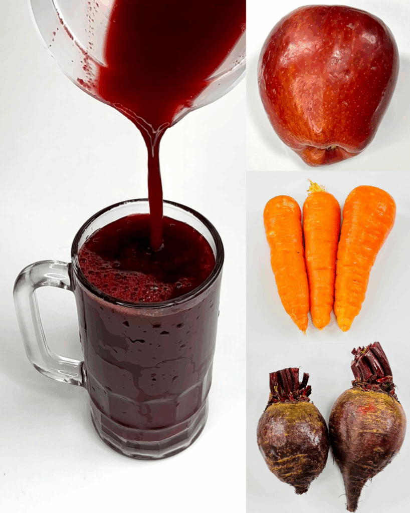Gracias a la combinación de remolacha, manzana y zanahoria, obtendrás una bebida rica en vitaminas, minerales y antioxidantes que protege tus ojos, fortalece la sangre y ayuda a tu organismo a eliminar toxinas.