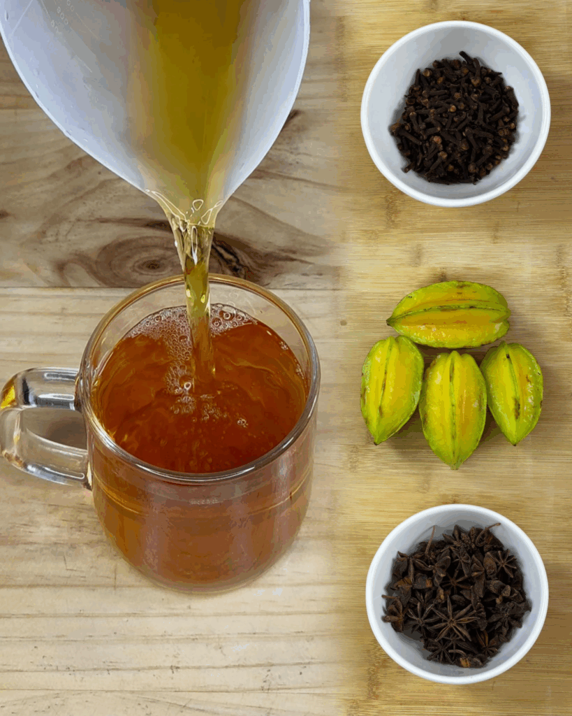 - Retira del fuego, cuela la preparación y sirve en una taza.