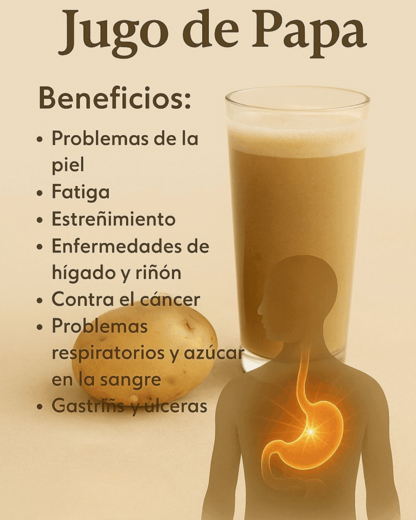 - Dosis recomendada: 1/4 a 1/2 taza de jugo de papa recién exprimido.