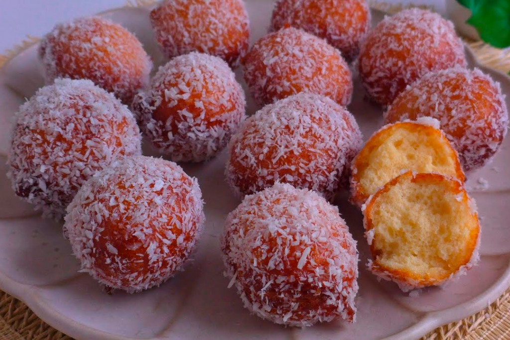 7. Mientras las bolitas aún están calientes, espolvorea el coco rallado por encima para que se adhiera bien.