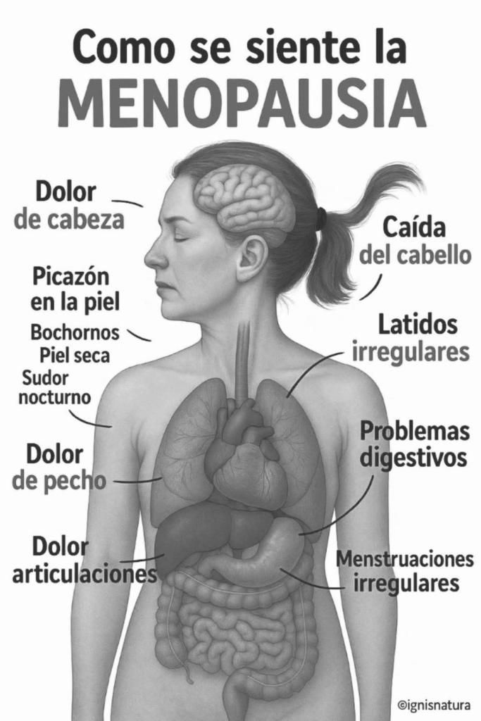Durante esta etapa, los ovarios dejan de producir niveles significativos de hormonas reproductivas, especialmente estrógeno y progesterona. Esto puede provocar síntomas como: