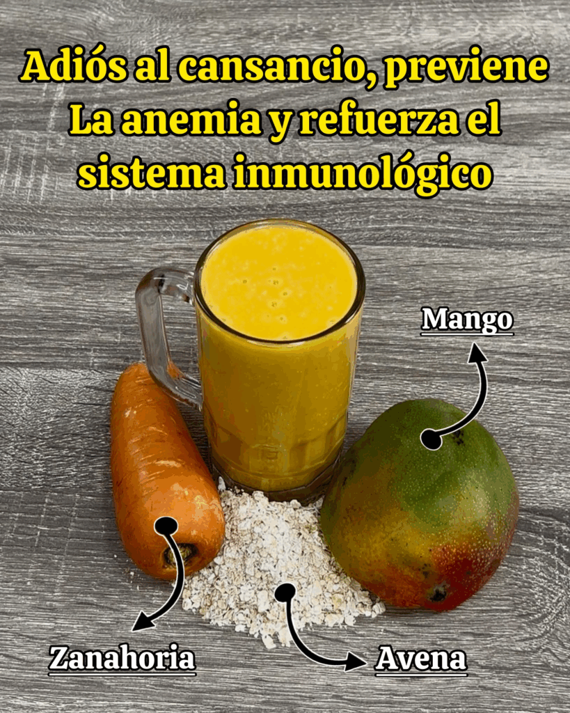 Este delicioso jugo natural de mango, zanahoria y avena es la solución perfecta para recargar tu cuerpo, aumentar los glóbulos rojos, combatir la fatiga y reforzar el sistema inmunológico 💪