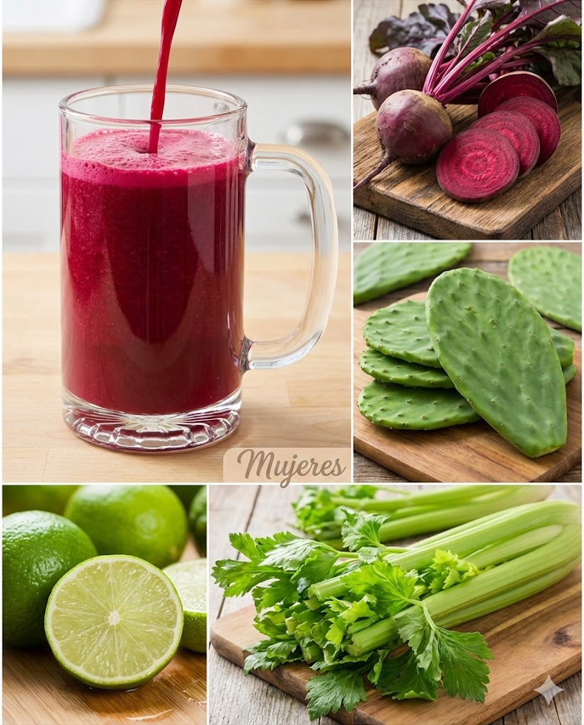 Tú también puedes darle a tu cuerpo este apoyo natural. Un vaso de remolacha, nopal, limón y apio al día puede convertirse en tu ritual de cuidado: sencillo, económico y profundamente beneficioso.