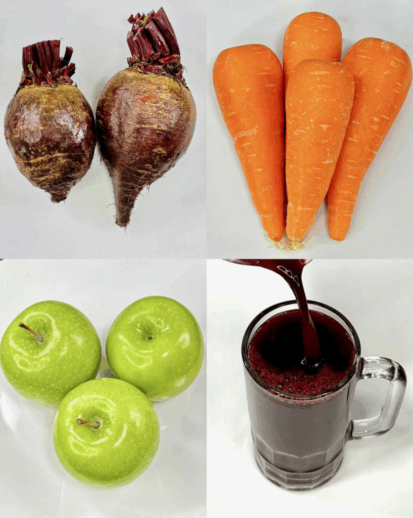 4️⃣ Licúa la remolacha con el jugo colado de la zanahoria y manzana.