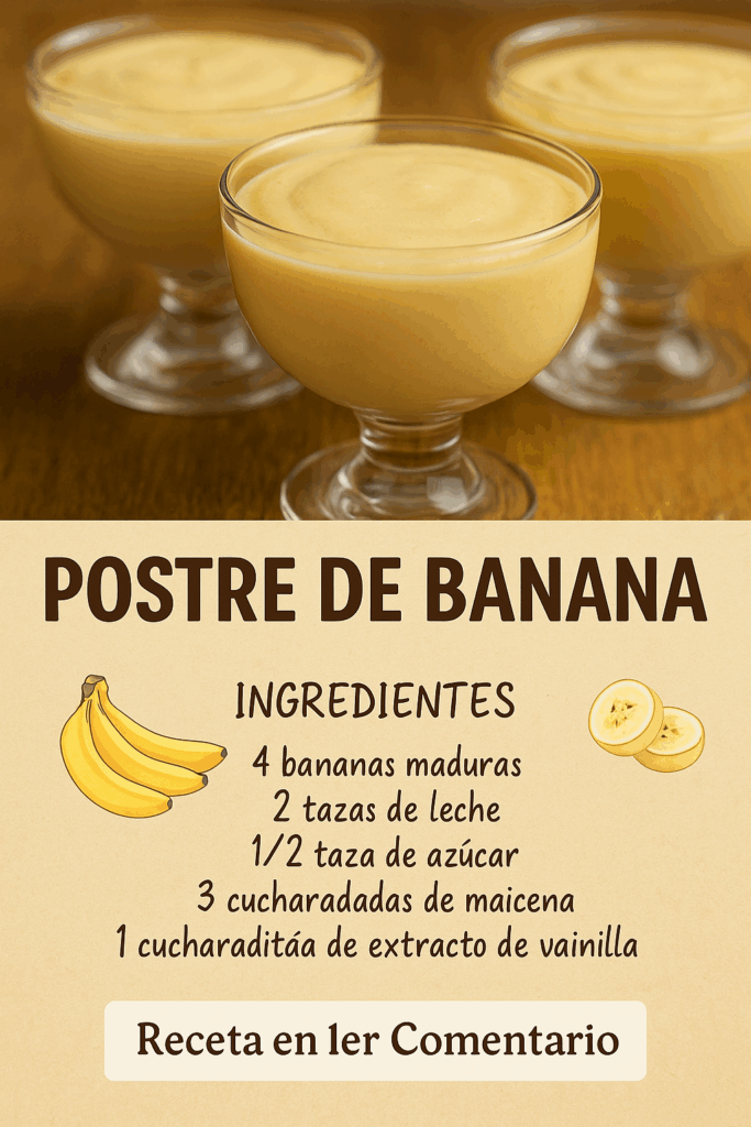 ✨ Este postre cremoso de banana es versátil, fácil y delicioso. Puedes adaptarlo según tu gusto y sorprender a todos con una receta casera que nunca falla. ¡Pruébalo y dale tu toque personal!