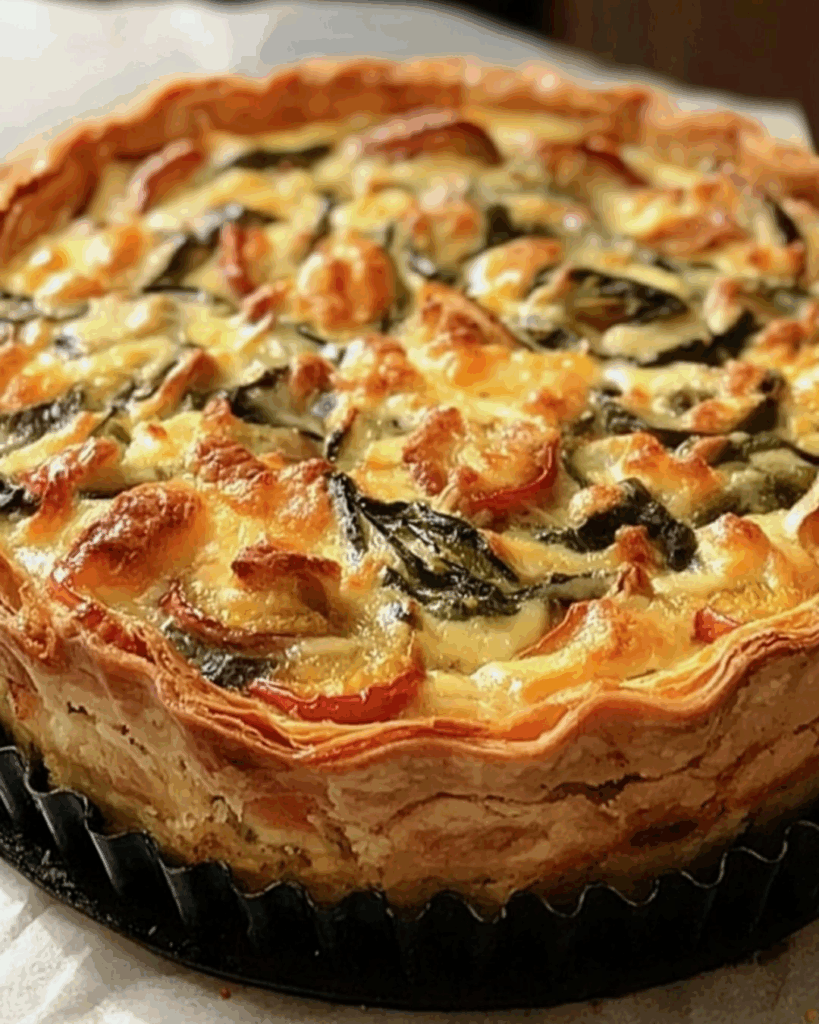 Es una opción ideal para el almuerzo o la cena, con un relleno cremoso de berenjenas, champiñones y bacon, todo envuelto en una base de masa crujiente.