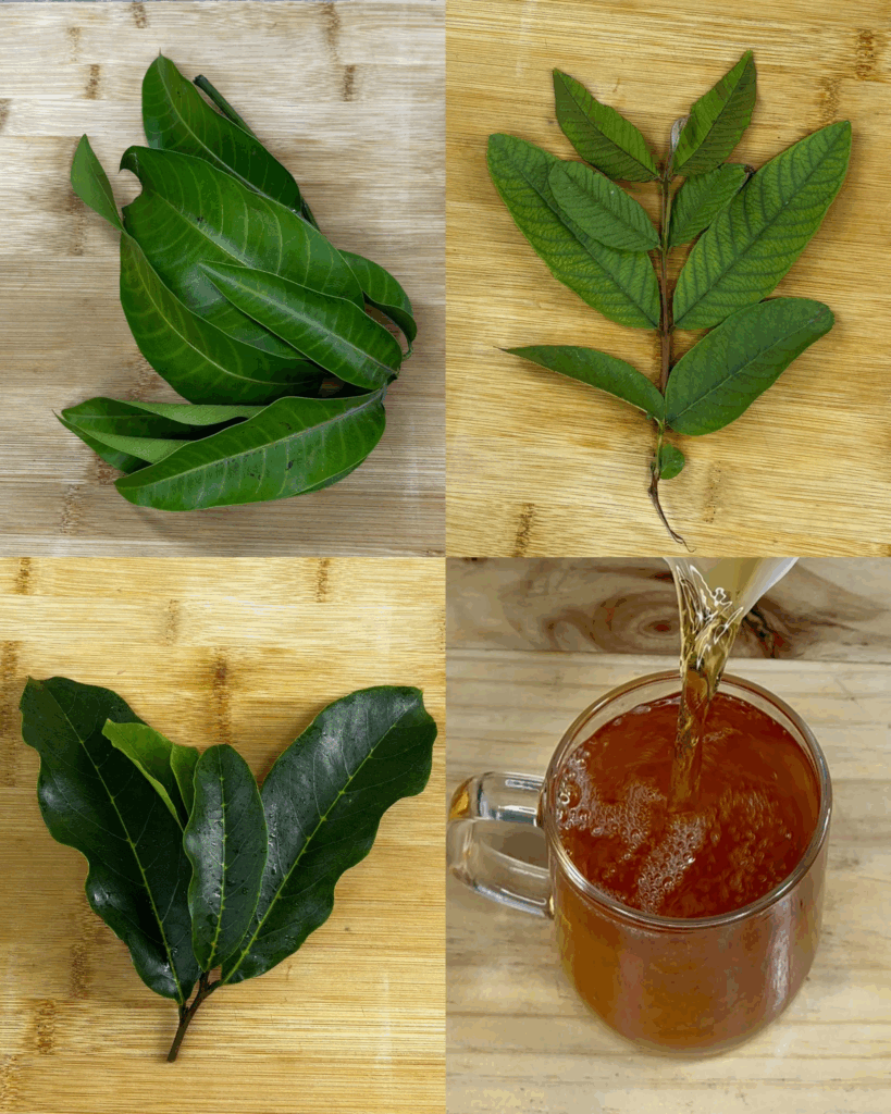 • 4 hojas de guayaba, bien lavadas y cortadas en trozos pequeños.