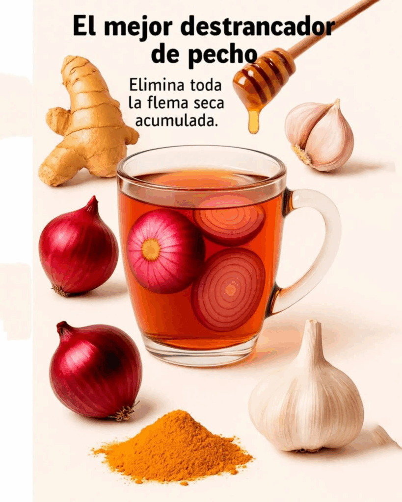 🍵 Té Expectorante Natural de Jengibre, Cúrcuma, Ajo y Cebolla Morada